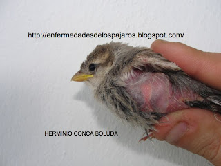 Andando por Murcia me llamó la atención este gorrioncillo que revoloteaba por el suelo. Me pareció observar que tenía zonas de las remeras blancas y tras varios tropezones tras él, logre capturarlo. ¡¡¡Sorpresa!!! tenía entre mis manos un pájaro raro, raro… Este gorrión presentaba una aberración de color en algunas remeras, además de unas marcadas líneas de estrés causadas por una mala alimentación en su etapa de nido. También presentaba una descompensación de los sacos aéreos torácicos (aerosaculitis).